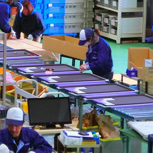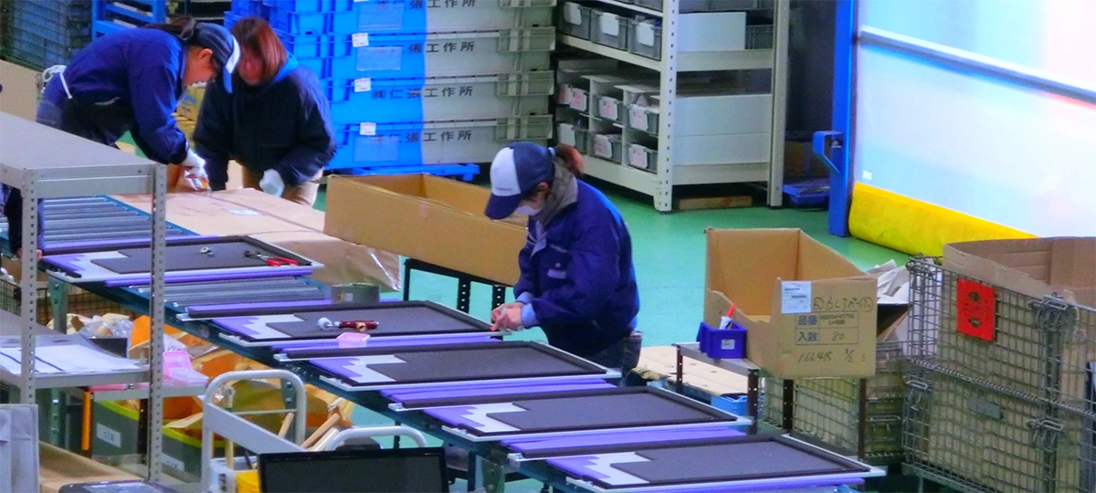 当社は、板金ユニットやパーツをお客様製造ラインへ供給する一次サプライヤーとしての仕事を多く持ちます。そこでは、外注先や仕入先も含めた一元管理を行う生産管理システムにより納期遵守率を高めています。全国各地への輸送最適化も複数の運送会社様との配送ネットワークを構築し実現させています。